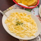 Medium side Italian noodles served in a white cream sauce made with Parmigiano cheese.